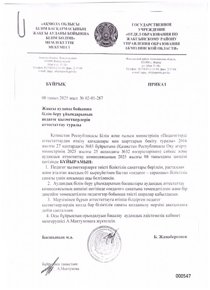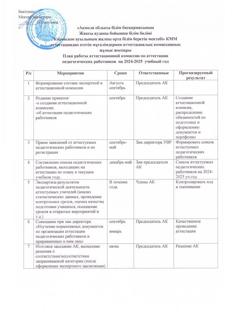 Педагогтерді аттестаттаудың перспективалық жоспары 2024-2025