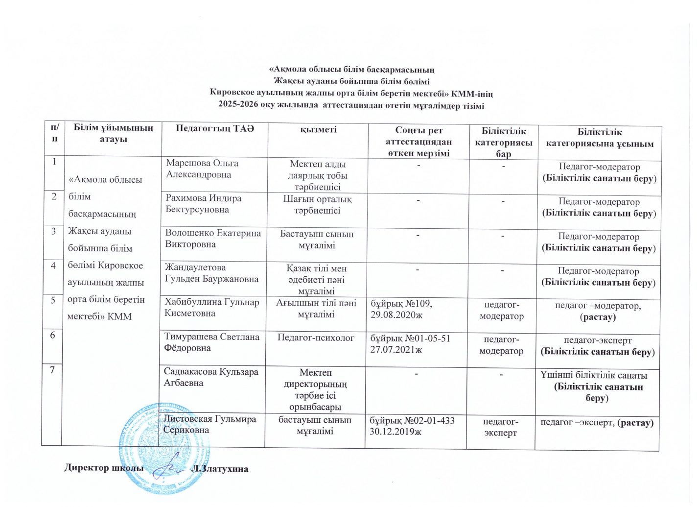 Педагогтерді аттестаттаудың перспективалық жоспары 2025-2026