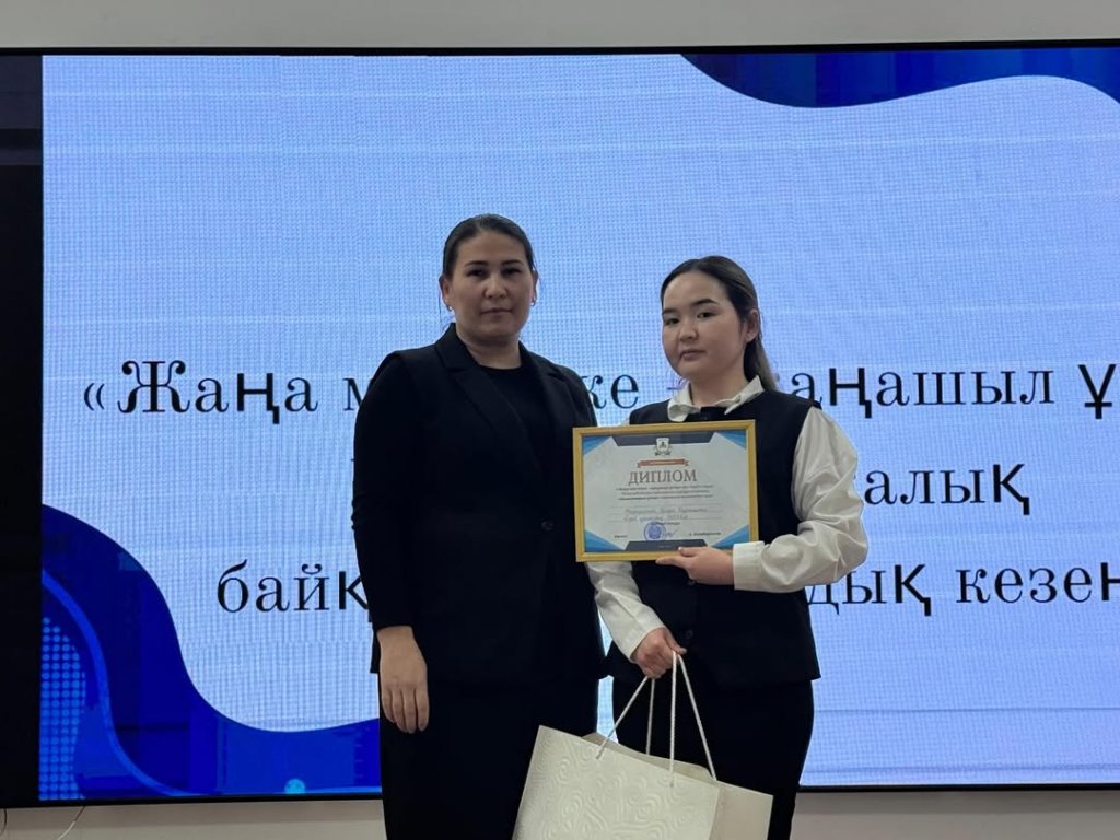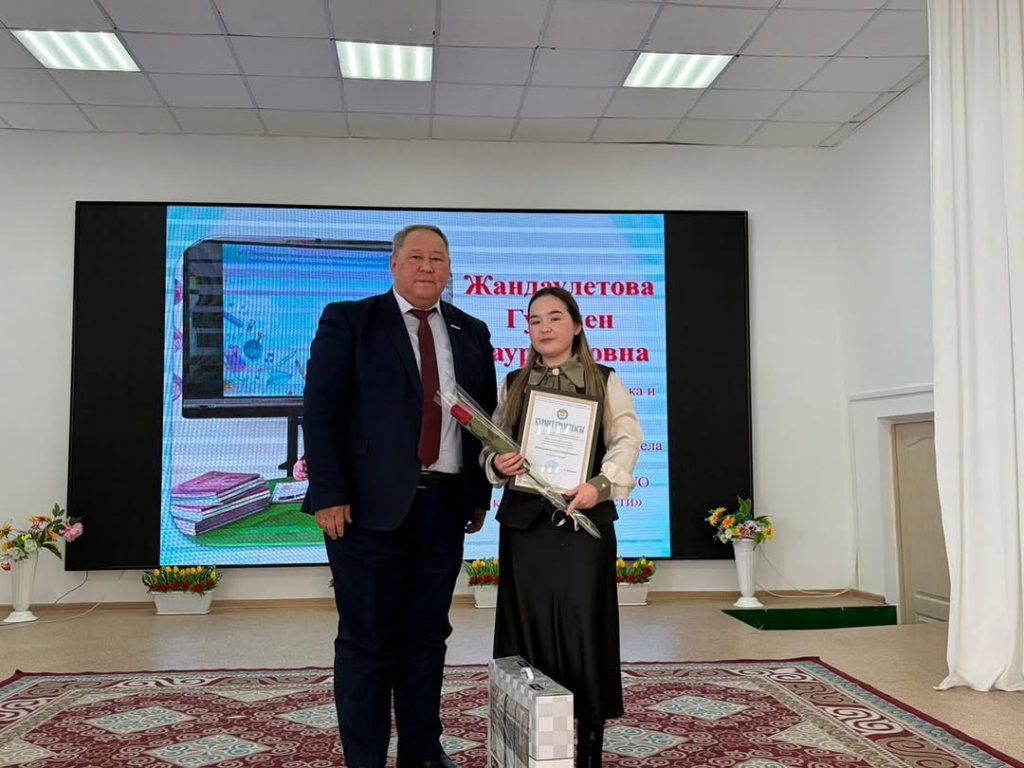 "Жаңа мектеп-заманауи мұғалім" байқау қорытындысы бойынша "шығармашылық мұғалім"номинациясына ие болды.