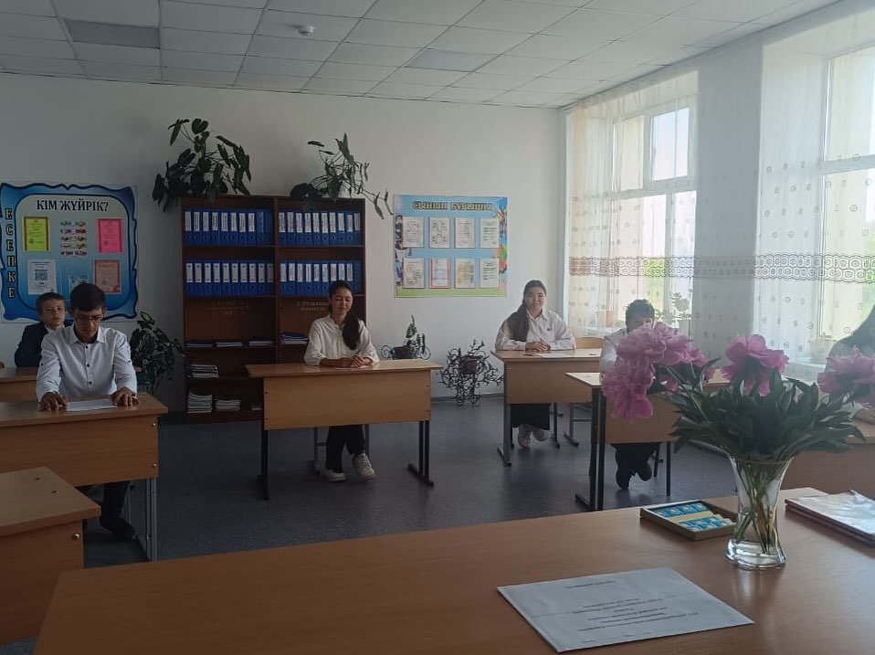 2025 жылғы 10 маусымда 9 "Б" сынып оқушыларын қорытынды аттестаттауда қазақ тілі мен әдебиеті пәнінен жазбаша емтихан өтеді.