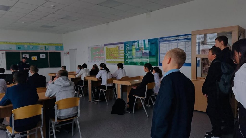 08.09.2025 жылы Жақсы ауданы ПБ ОМПС УПИ учаскелік инспекторы полиция майоры Н. М. Қайранбеков жоғары сынып оқушыларымен "Буллинг - қалай күресуге болады?"және ЖҚЕ тақырыбы