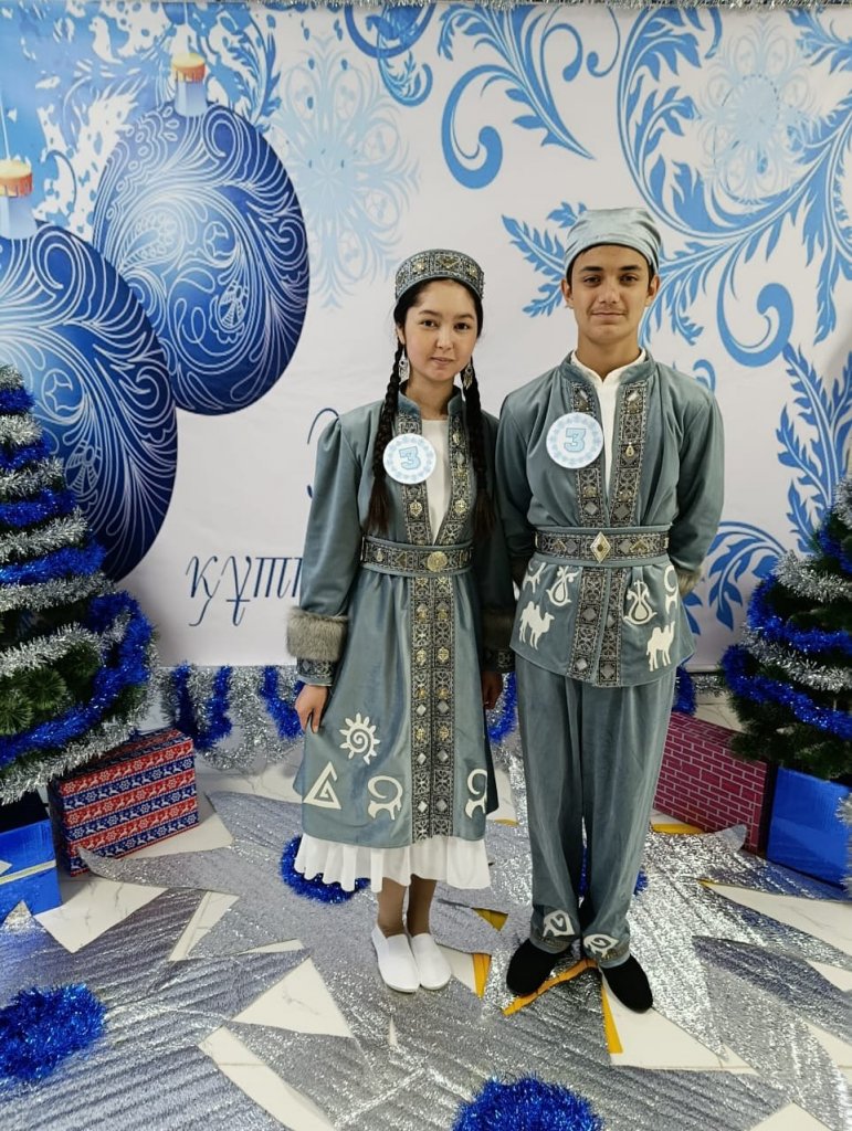 Аудан әкімінің "QAZAQ FANTASY” атты аудандық жаңа жылдық балында 11-сынып оқушысы Камилянов Степан және 10-сынып оқушысы Басыбай Жания "Қозы Көрпеш-Баян сұлу" кейіпкерлерін нақышына келтіргені үшін жүлделі 3-орынға ие болды.
