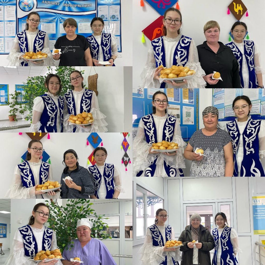 Дастарқан: Ұлттық тағамдар (наурыз көже, бауырсақ,шелпек) пісіріліп, дастарқан жайылады.